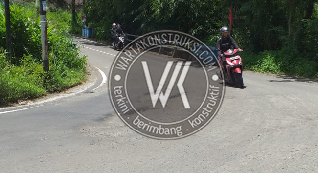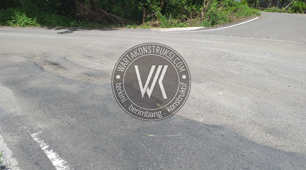 Pantauan wartakonstruksi.id di lapangan, tak jauh dari sebuah sekolah MTs terdapat kerusakan parah pada tikungan jalan yang menanjak setelah jembatan. Tikungan berlubang lumayan dalam dengan diameter yang beragam. Ada yang dangkal memanjang ada juga yang dalam, juga memanjang.
