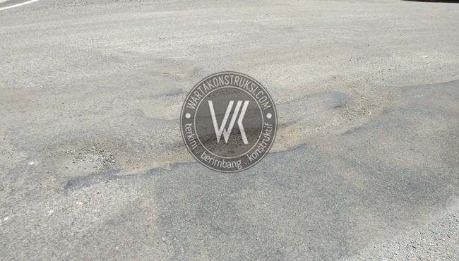 Tidak hanya lubang di bagian samping tikungan atau di bahu jalan terdapat ceceran sisa bekas cor dan aspal yang mengelupas. Kemudian di sepanjang ruas jalan itu juga terdapat banyak lubang yang posisinya persis berada di tengah jalan. Dari pengamatan media ini, setidaknya ada 6 lubang dengan diameter yang beragam.