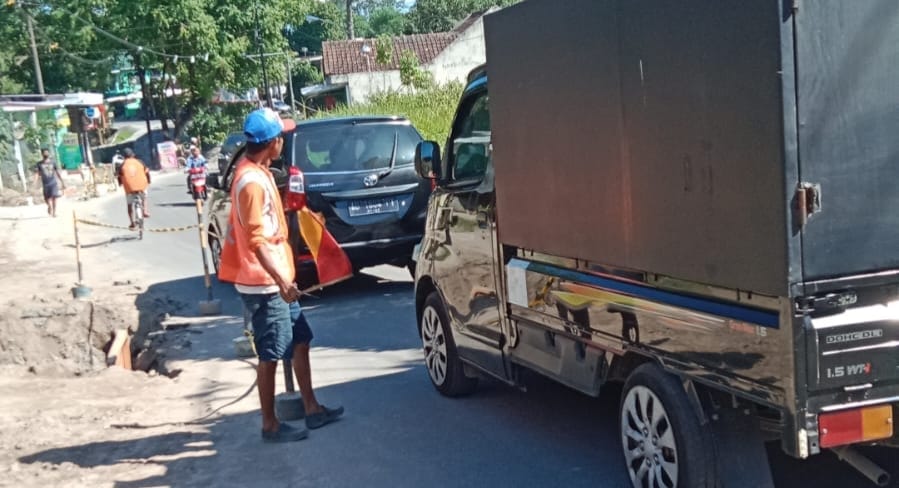 SLEMAN (wartakonstruksi.com) – Kekacauan arus lalu lintas yang sempat terjadi di Jalan Jambon, Sinduadi, Mlati, Sleman akhirnya teratasi. Petugas pengatur lalu lintas terlihat standby di lokasi pekerjaan yang menjadi titik kekacauan.